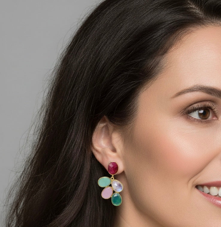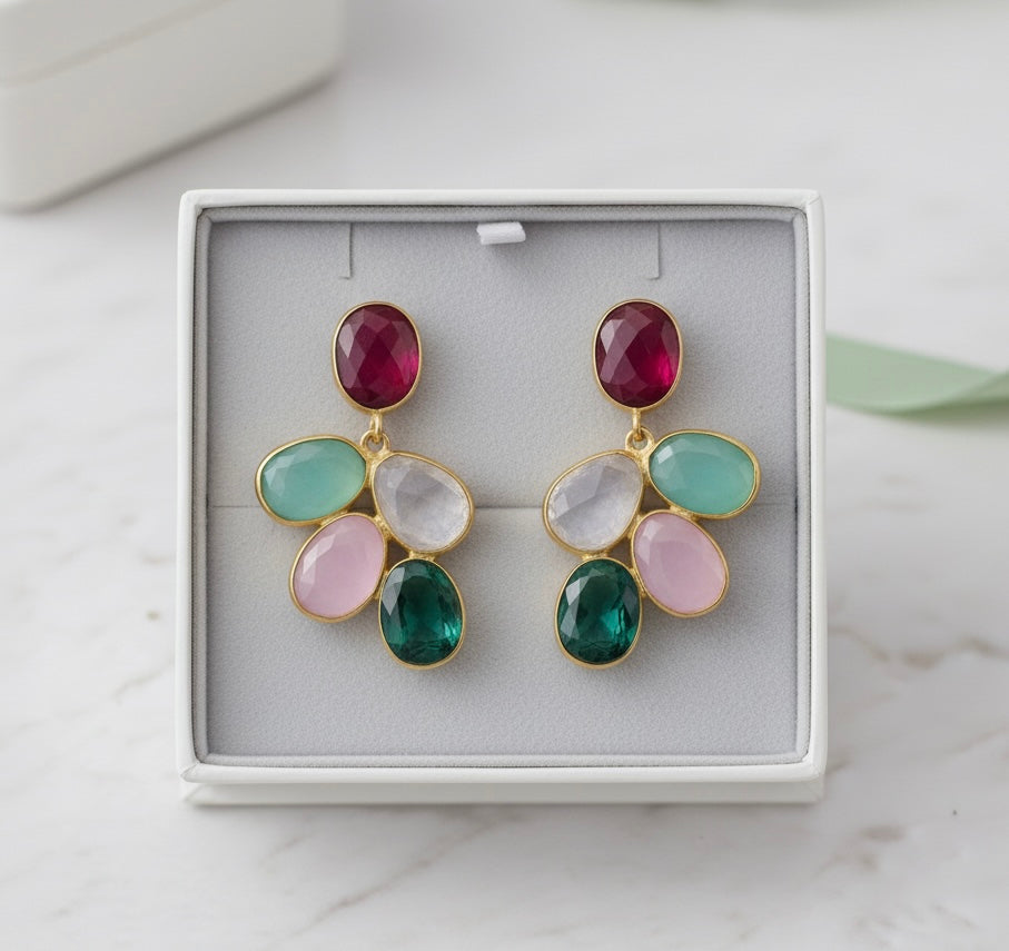 Stones: ruby, chalcedony, rose quartz, moonstone, green ónix