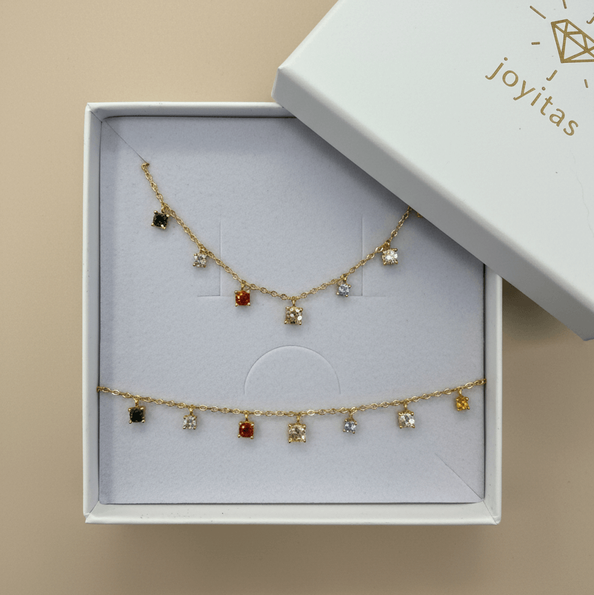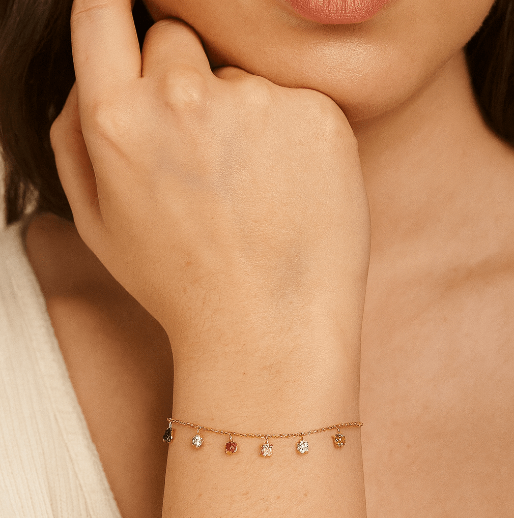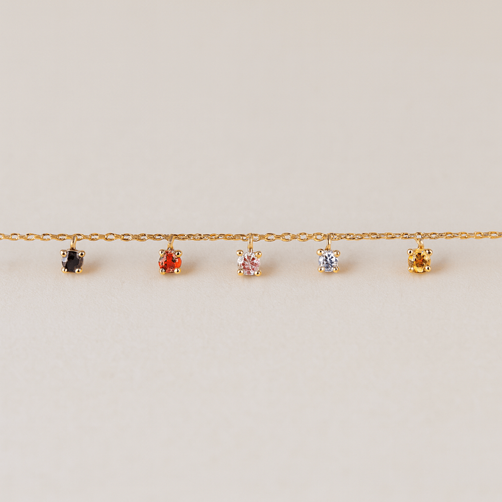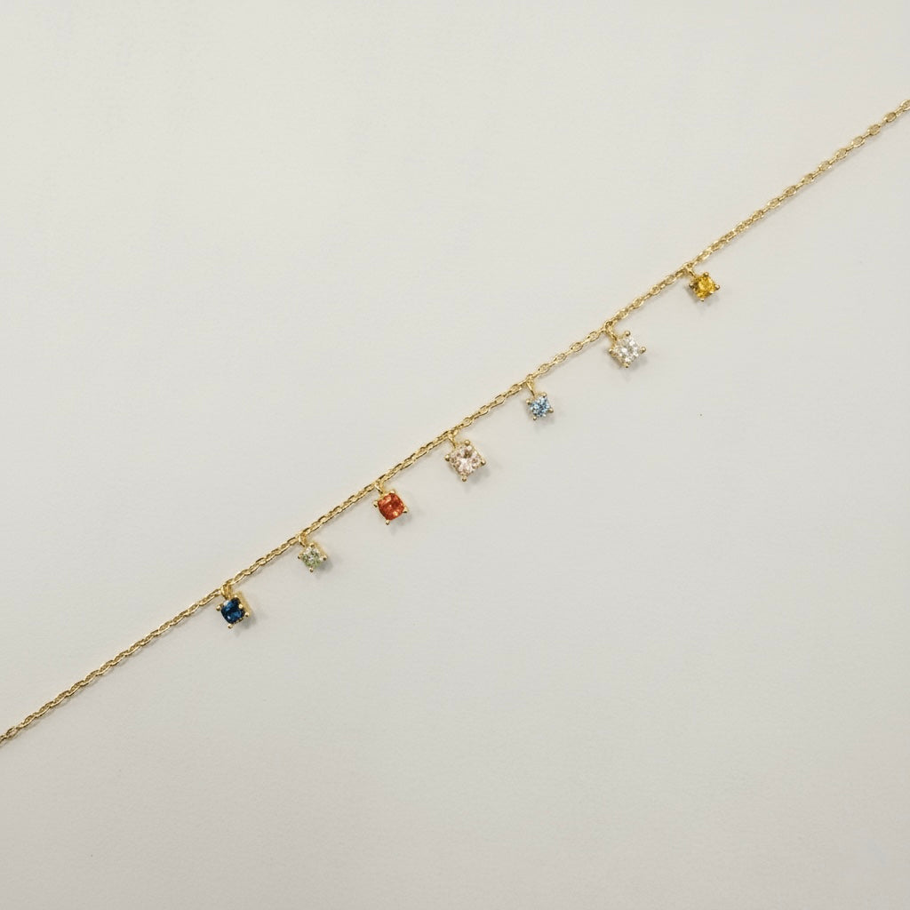 Brighten your style with this delicate gold bracelet adorned with small multicolored crystals. Its modern and feminine design adds a touch of sparkle and joy to any look, whether for everyday wear or a special occasion. Lightweight, versatile, and full of charm, it’s the perfect accessory to stack with other bracelets or wear on its own as a standout piece. A must-have for lovers of unique details!